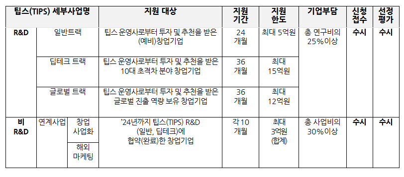 - 일반 트랙: 링크(클릭) - 딥테크 트랙: 링크(클릭) - 글로벌 트랙: 링크(클릭) |